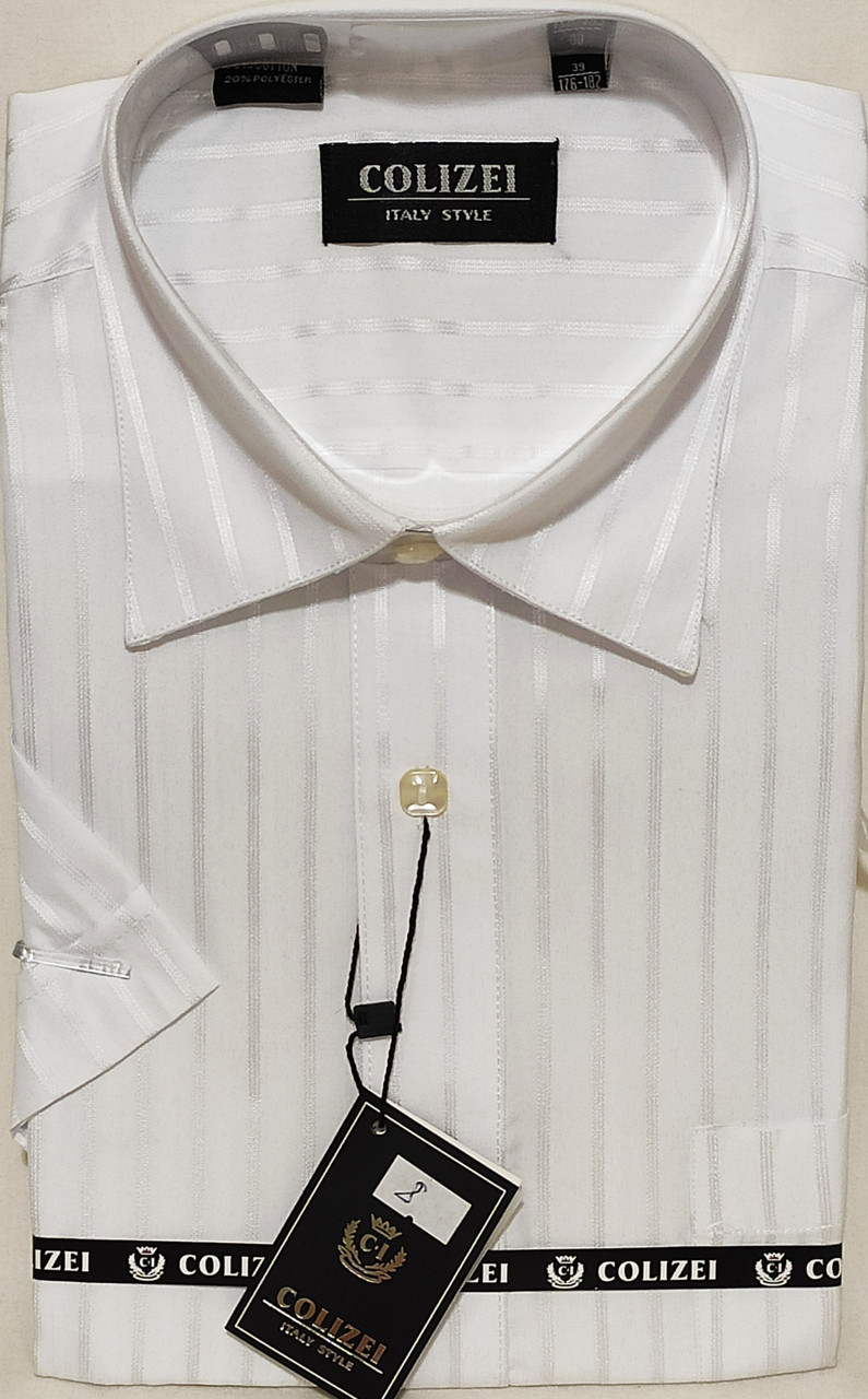 Сорочка чоловіча Colizei vk-0008 біла в смужку класична з коротким рукавом