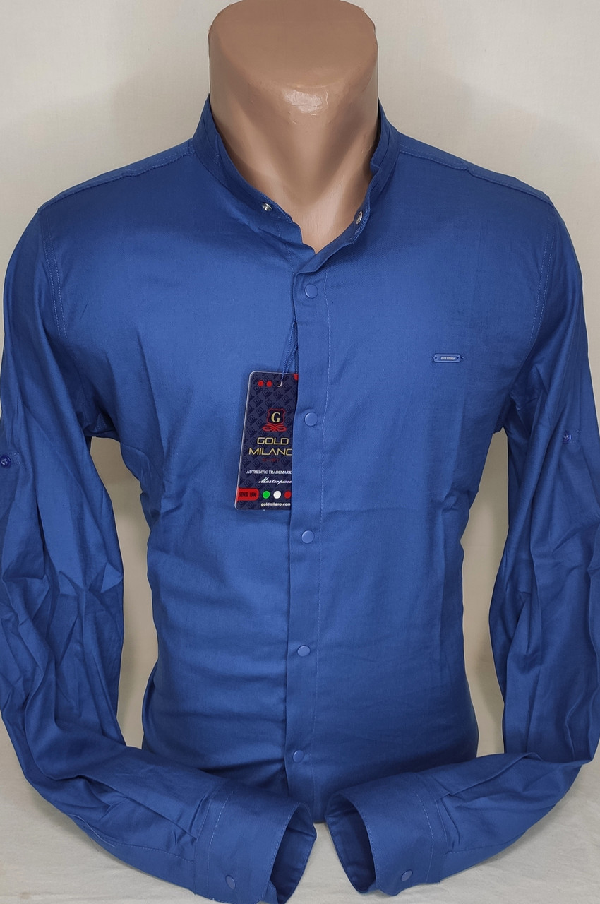 | Тип призначення | Чоловіча синя сорочка Gold Milano vd-0019 однотонна приталені комір стійка Туреччина стильна |