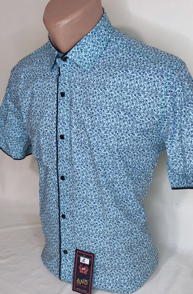 Чоловічі тенниски стильні AND vk-0002 бірюзові в принт приталені Туреччина, чоловіча сорочка короткий рукав M