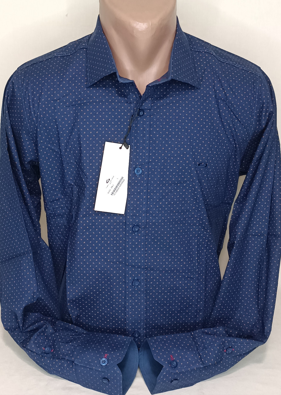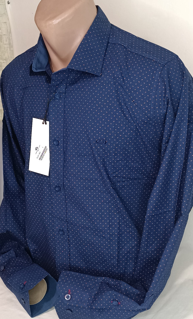 Сорочка чоловіча Gavi Galdo vd-0161 синя приталена в принт стрейч бавовна Туреччина з довгим рукавом L