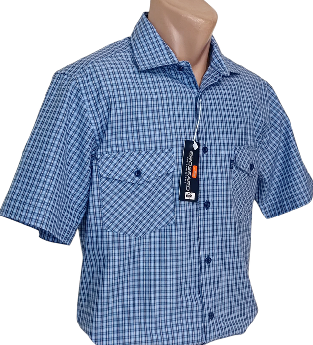 | Назва | Чоловіча сорочка Brossard vk-0066 синя в клітинку класична бавовна з коротким рукавом, теніска натуральна |
