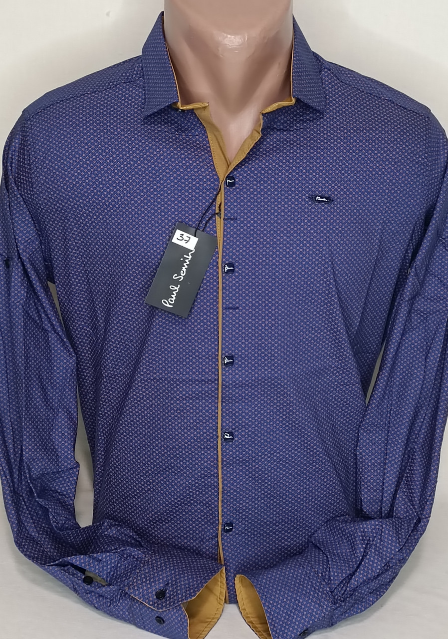 Сорочка чоловіча Paul Smith vd-0037 синя приталена в принт із довгим рукавом Туреччина, стильна, ошатна. ХИТ СЕЗОНА!!!Чоловіча сорочка синього кольору у світло-коричневий принт приталеного силуету. Має плоский комір та оздоблення коричневого тону під коміром, під манжетами та під планкою. Застібається на кнопки та ґудзики, рукави трансформер, без кишеня. від турецького виробника Paul Smith СКЛАД: 95% Cotton, 5% lucra СТИЛЬ: на випуск СЕЗОН: ВСІ Сезони Ошатно, елегантнопро, стильно та дуже приємна до тіла. Підходить як для святкових заходів, так і для повсякденного носіння. Перед замовленням наявність розмірів будь ласка уточнюйте в менеджера. Замовлення оформлене до 13.00 відправлення 100% того ж дня (крім понеділка). Під час замовлення будь ласка, вмовляйте свої параметри (ширина плечей, об'єм грудей, об'єм талії, довжина виробу і довжина рукава від плеча). Заміри бажано робити по виробу, що підходить чоловікові. Таблиця розмірів