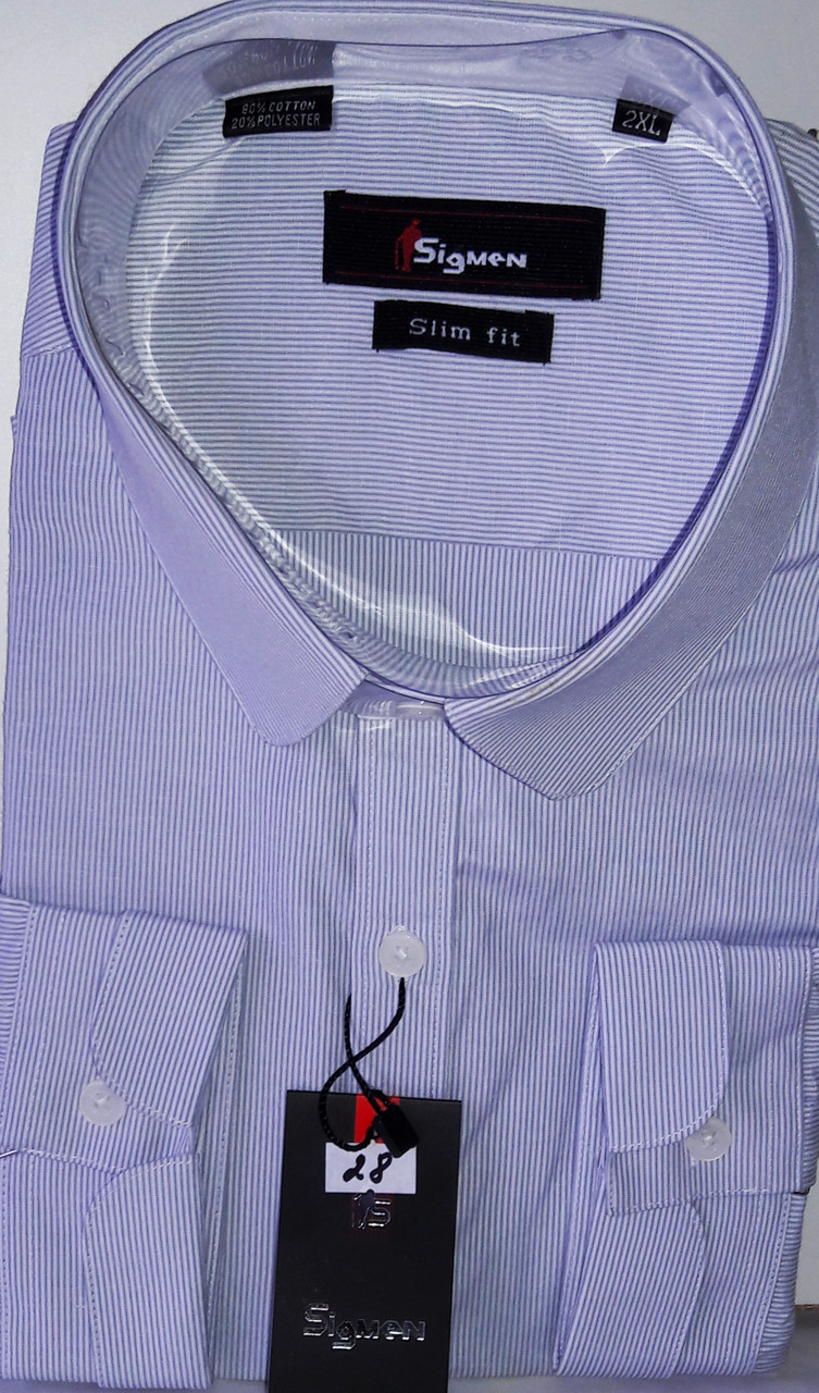Чоловіча сорочка світло сірого кольору у дрібну білу смужку приталеного силуету з довгим рукавом. Має класичний комір,комбіновану планку і повністю застібається на ефектні гудзики,дві кишені. від Фабричного китайського виробника Sig Men СКЛАД: 80% Бавовна, 20% Поліестер Ошатно, элегантнпро, стильно, якісно і дорого виглядає. Підходить як для святкових заходів так і для повсякденного носіння. Перед замовленням наявність розмірів будь Ласка уточнюйте у менеджера. Замовлення прийнятий до 13.00 відправка в той же день 100% При замовленні будь-ласка вказуйте свої параметри(ширина плечей, об'єм грудей, об'єм талії, довжина виробу і довжина рукава від плеча).(Заміри бажано робити по виробу, яке підходить чоловікові)