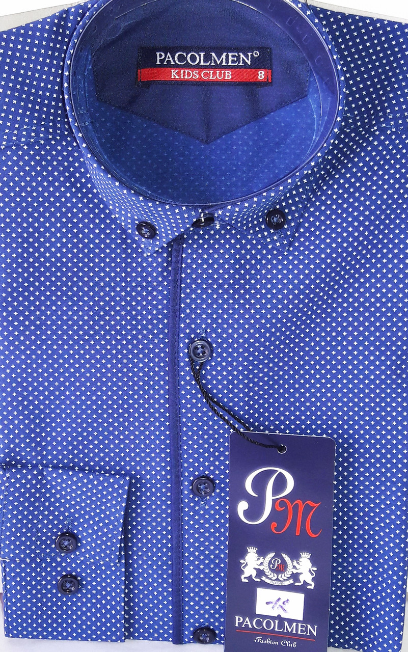 Сорочка дитяча з довгим рукавом dd-0012 Pacolmen синя приталені з принтом